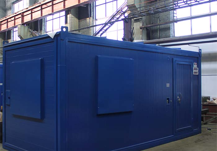 2. Электроагрегат установлен в блок-контейнер с габаритными размерами 7600мм*2350мм*2690мм, выполненный из сэндвич-панелей. Контейнер обеспечивает необходимую тепло- и шумоизоляцию, защиту от внешних воздействий окружающей среды, соответствует климатическому исполнению УХЛ 1. Основной несущий корпус контейнера соответствует II-ой степени огнестойкости.